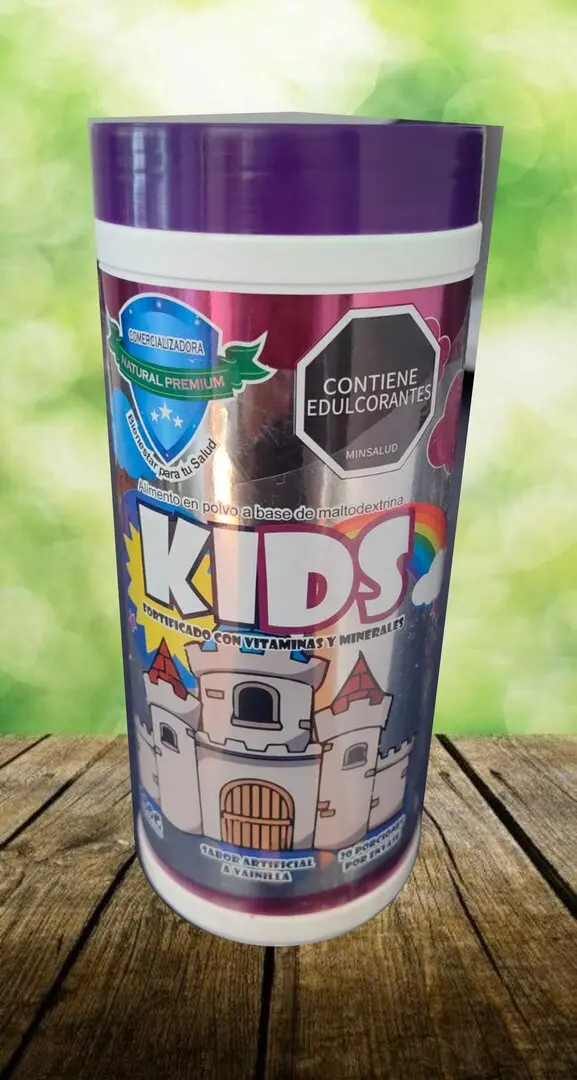 Fortificado con Vitaminas y Minerales. Alimento en polvo a base de maltodextrina. Sabor a vainilla.